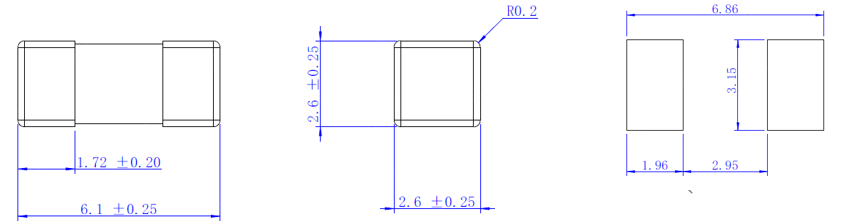 • 6125(6.1x2.6x2.6mm)  300/250/125/72/63V  200mA-40A